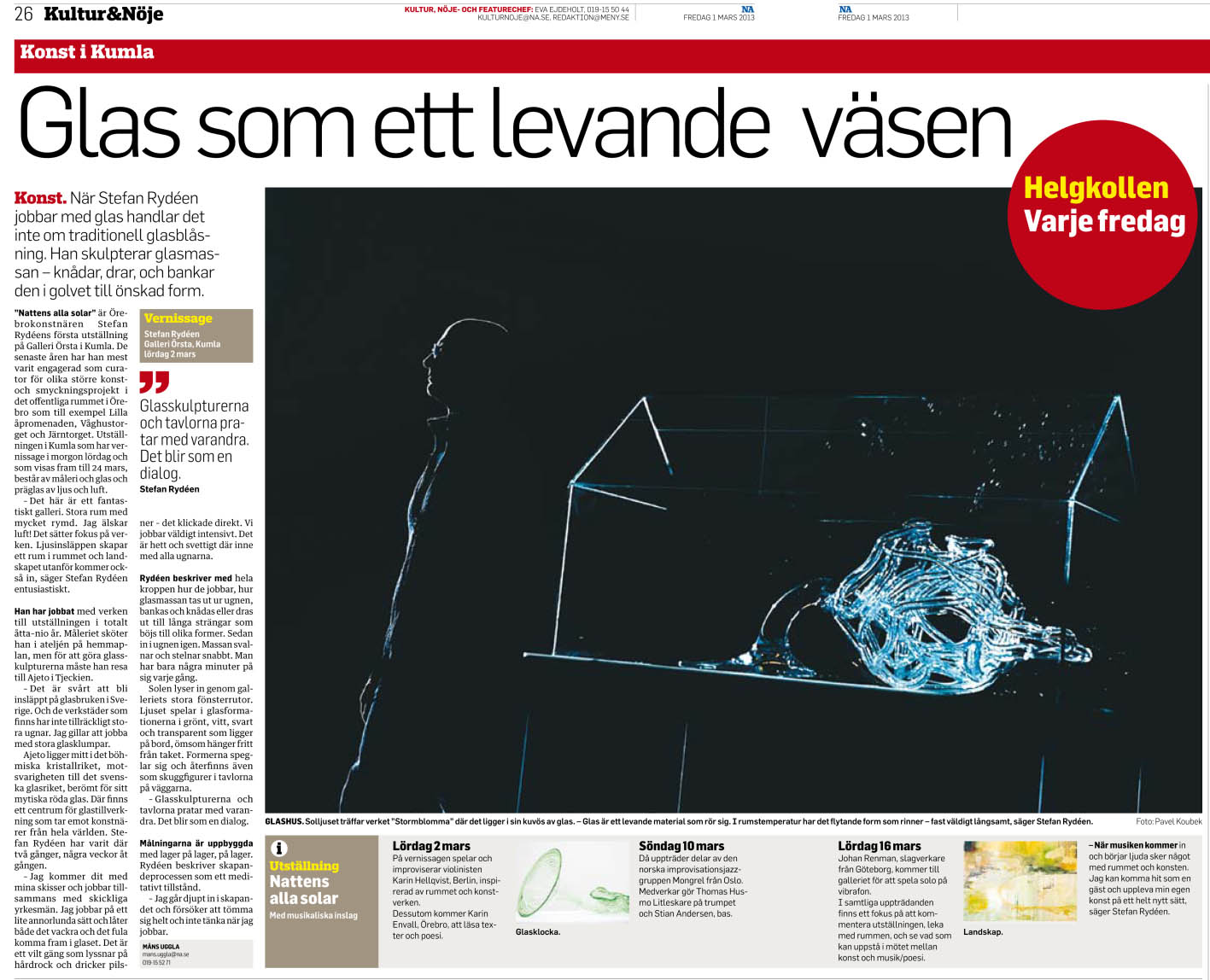 Jag arbetar i många olika material och tekniker, därför att varje verk måste få öppnas upp utifrån sitt eget behov. Det kräver att jag ger upp kontrollen och det planerade. Uppriktigheten i skapandet finns på den plats som nyfikenheten lett mig till. Där det som händer överraskar mig.