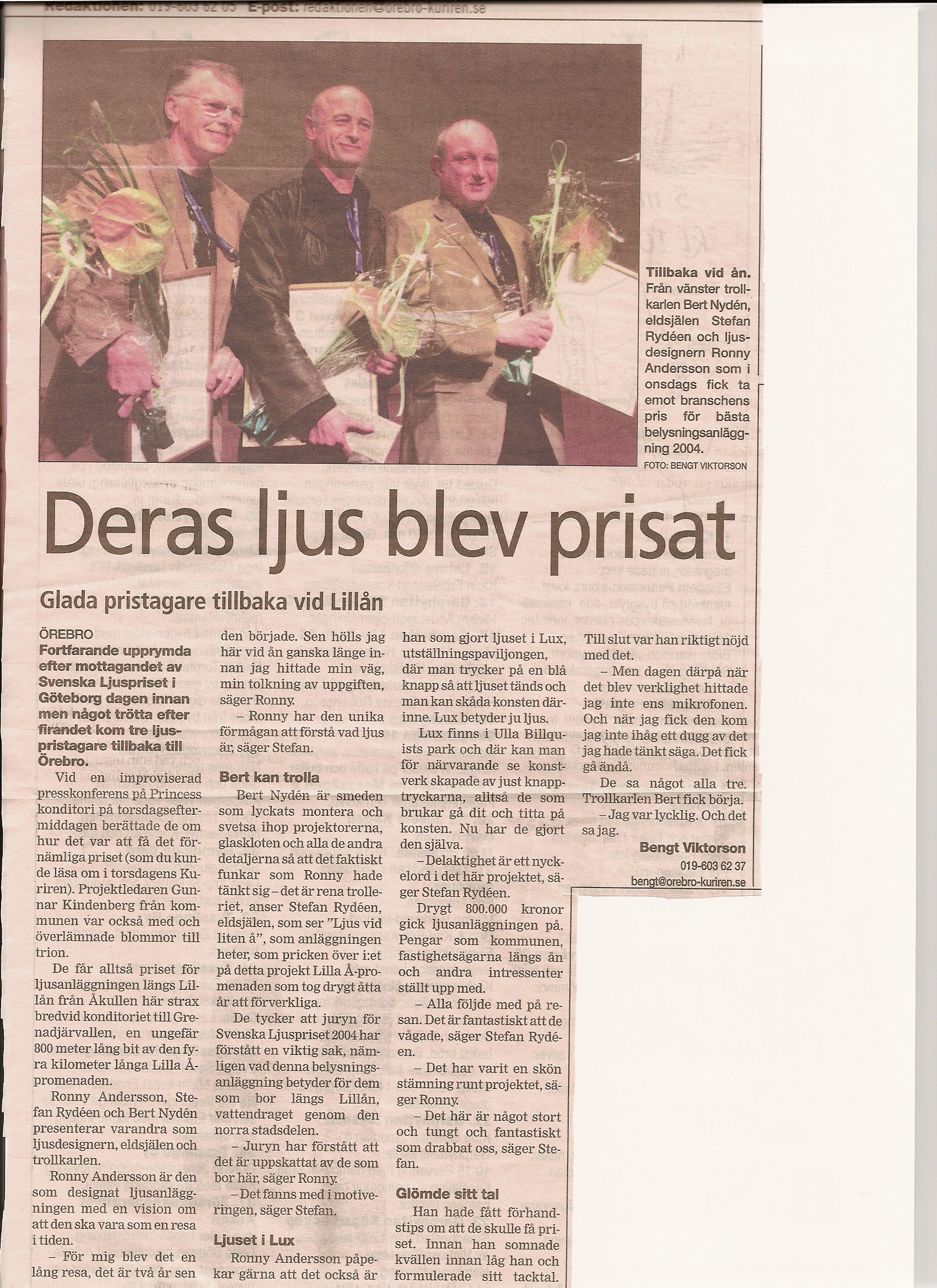 Vinnare av Svenska Ljuspriset 2004 LÄNK >>. Svenska Hälsoinstitutet framhöll projektet som ett av Sveriges bästa. LÄNK >> (Pdf, se sid 23-24)