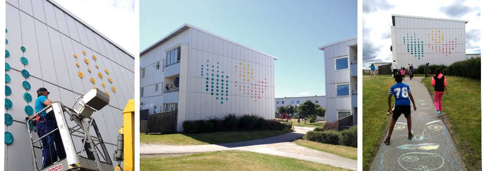 I Stefan Rydéens tolkning av uppdraget ingick en noggrann undersökning av områdets karaktär och arkitektur för att kunna skapa ett konstverk med maximal positiv verkan. Områdets barn fick sedan rent praktiskt delta i utförandet av verket, efter inledande workshops. Läs mer i denna pdf >>