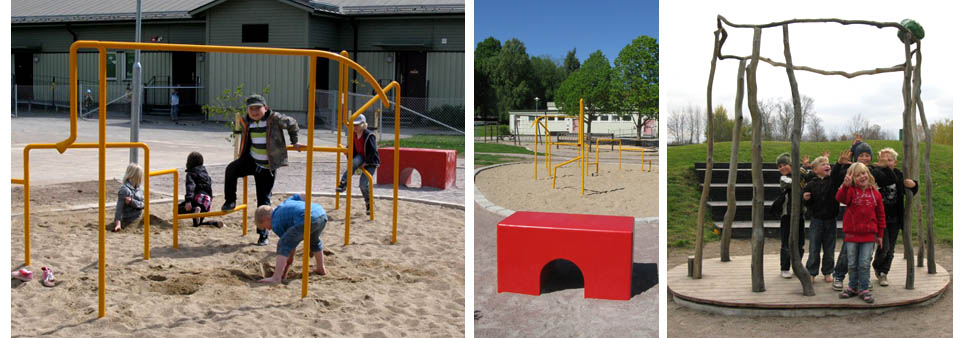 Gestaltning av helt ny skolgård med lekskulpturer, bänkar, stensättning, samt ett utomhusklassrum med tak.