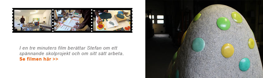 HIDINGE NYA SKOLA – offentligt uppdrag. En serie konstverk till den nybyggda skolans inom- och utomhusmiljöer. T. h. detalj av skulpturen "Väsen". |